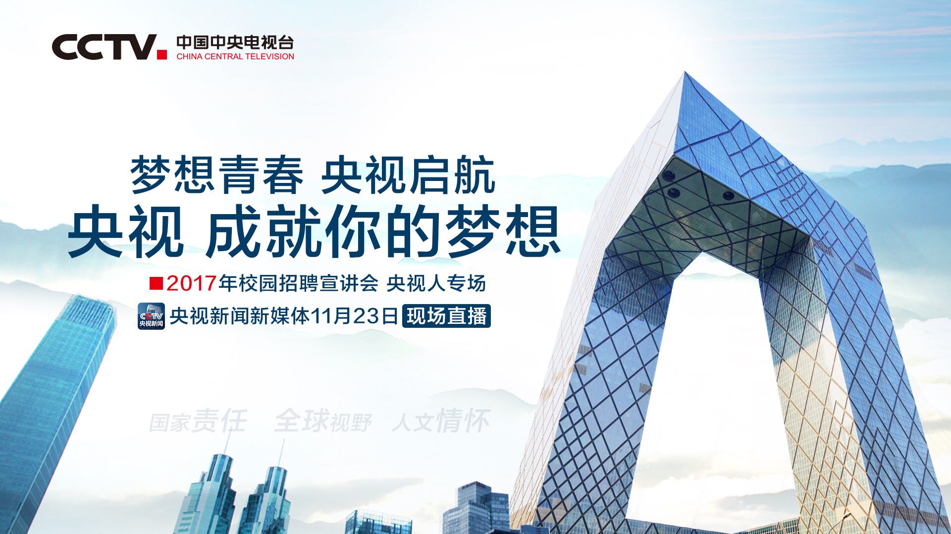 中央電視臺(tái)作為國(guó)內(nèi)最具影響力的主流媒體之一,一直致力于為廣大觀眾提供高質(zhì)量的節(jié)目和服務(wù),隨著業(yè)務(wù)的不斷發(fā)展和壯大,我們現(xiàn)面向全國(guó)招聘各類優(yōu)秀人才,共同打造更加精彩的電視內(nèi)容,這是一個(gè)展現(xiàn)你才華的舞臺(tái),一個(gè)實(shí)現(xiàn)你職業(yè)夢(mèng)想的舞臺(tái)!???