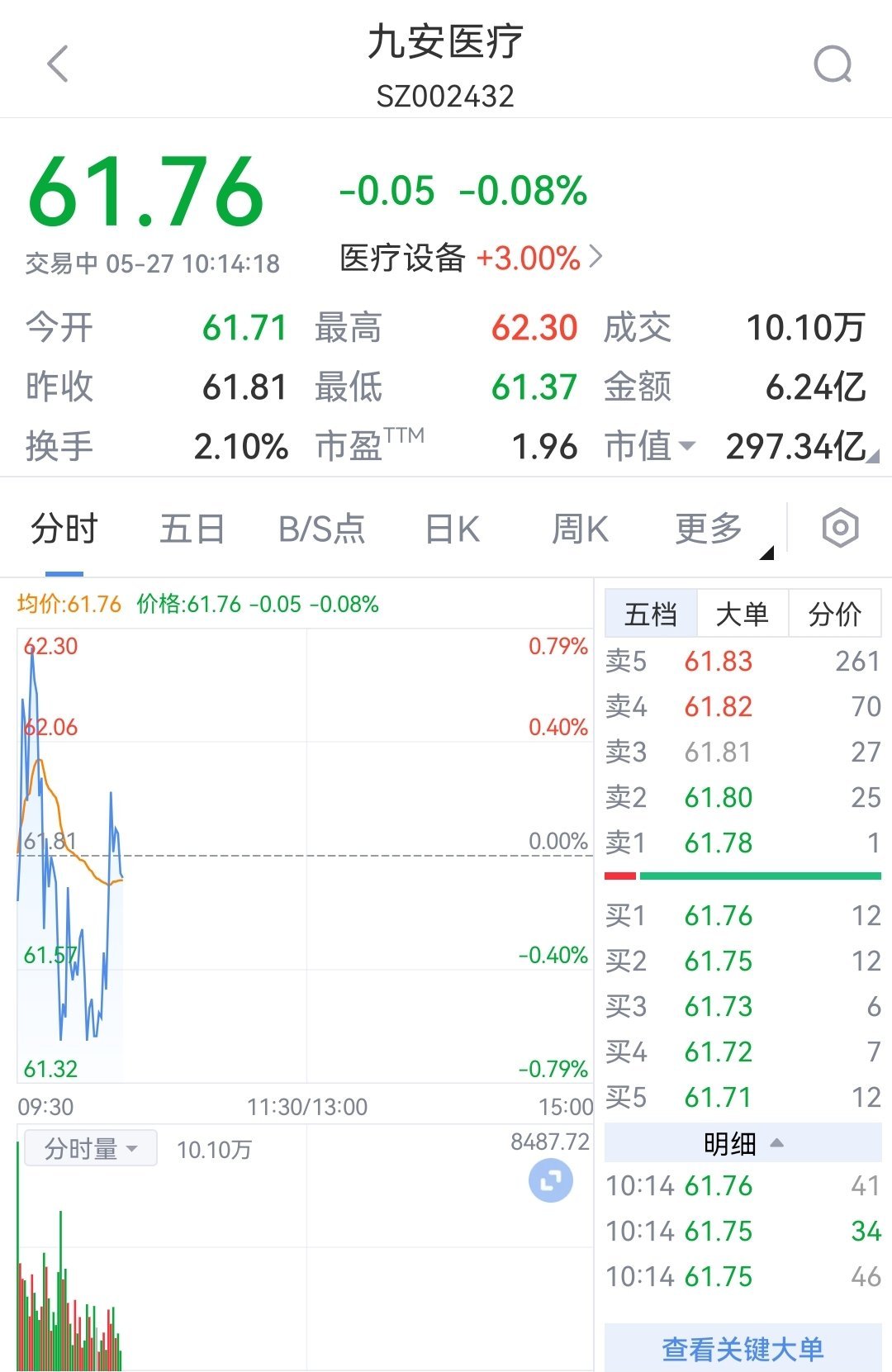 2、獲取九安醫(yī)療股票最新消息
