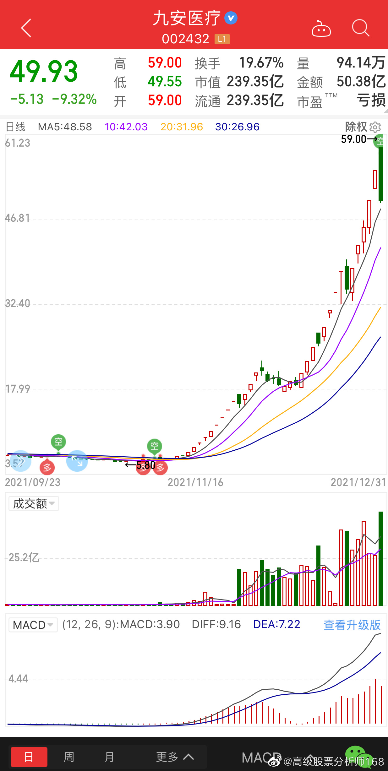 3、技術(shù)分析:運(yùn)用股票技術(shù)分析手段,研究九安醫(yī)療股票的走勢(shì),輔助投資決策。